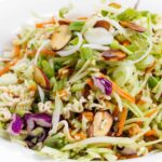 To prepare dressing, whisk white vinegar with canola oil, stevia packets and chicken seasoning packet from the ramen.