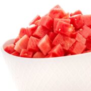 Rotate the stack and slice again to create bite-sized cubes. Place in a large serving bowl to serve!