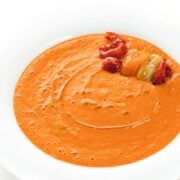 Tomatoes can be whole or halved - it doesn't matter. Both work!If the soup isn't hot enough for your liking, simply warm in a soup pot before serving.