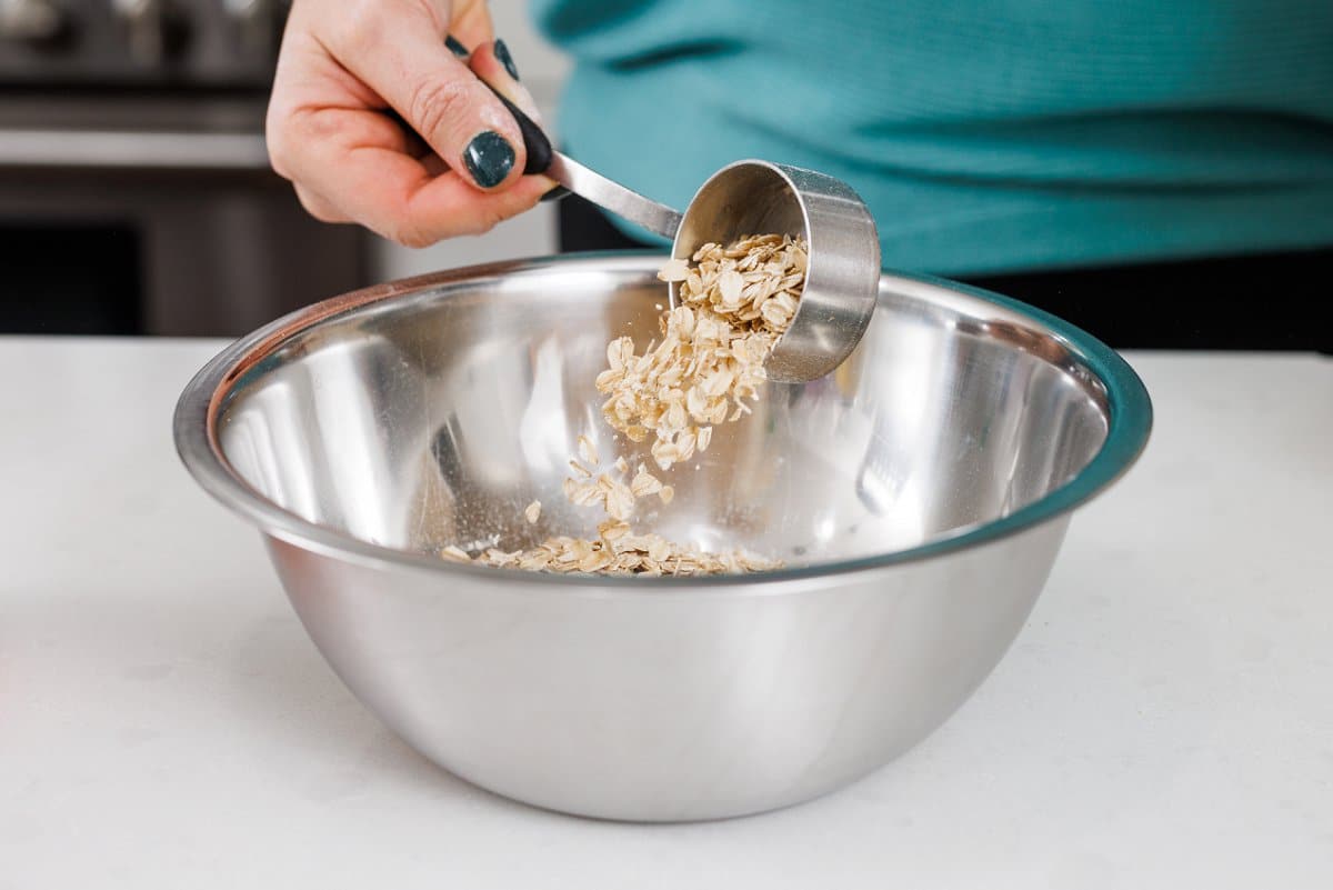 If you decide to add the walnuts, add them and toss them in the flour and oats to get them coated before continuing.